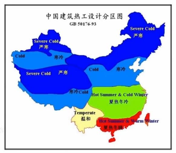 中国建筑热工设计分布图如下: