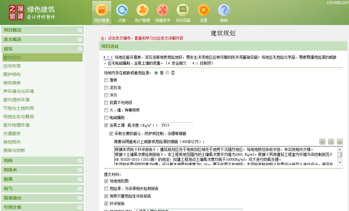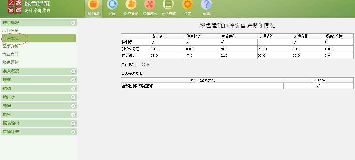 按照各专业填写好了,看看各向得分满不满足要求,基本级就很容易了。所控制项满足就可以了,填写时软件是有提示的,得分项就不填写了。