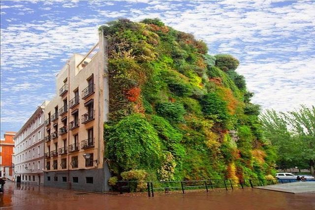 爬墙植物如爬墙虎、常青藤,可爬墙生长;攀藤植物如葡萄、牵牛花、紫藤、爆竹花、珊瑚藤等,可沿棚架攀缘而上;一些瓜类、豆类和中草药也可顺杆上爬。这些植物在炎热的夏天生长茂盛,正好用于遮挡太阳辐射,吸收太阳热量。到了冬天,这些植物落叶,又不会防碍建筑物接受日照。在门前或窗前,阳台前搭设棚架,使攀藤植物在架上生长,可形成挡板式或水平式遮阳。这种方法遮阳效果很明显,在盛夏季节,外墙外表面温度可降低4~5℃,室内气温及外墙内表面温度也可降低1℃左右,但种植爬墙植物和攀藤植物后,室内采光有所减弱,风速有所降低,温度稍有增加。