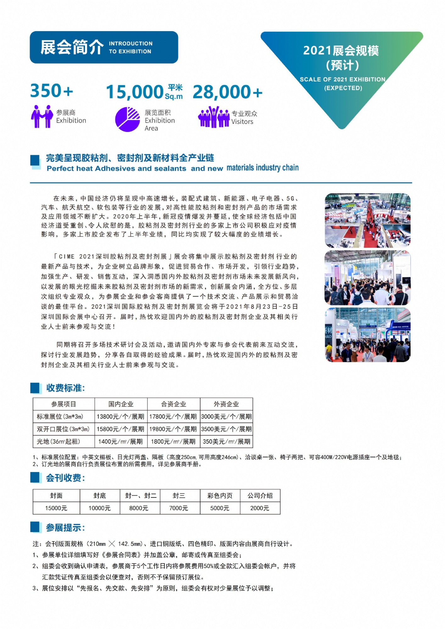 注:会刊版面规格(210mm ╳ 142.5mm)、进口铜版纸、四色精印、版面内容由展商自行设计。